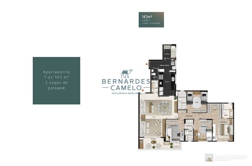 4 quartos, sendo 2 suítes e 2 semi-suítes