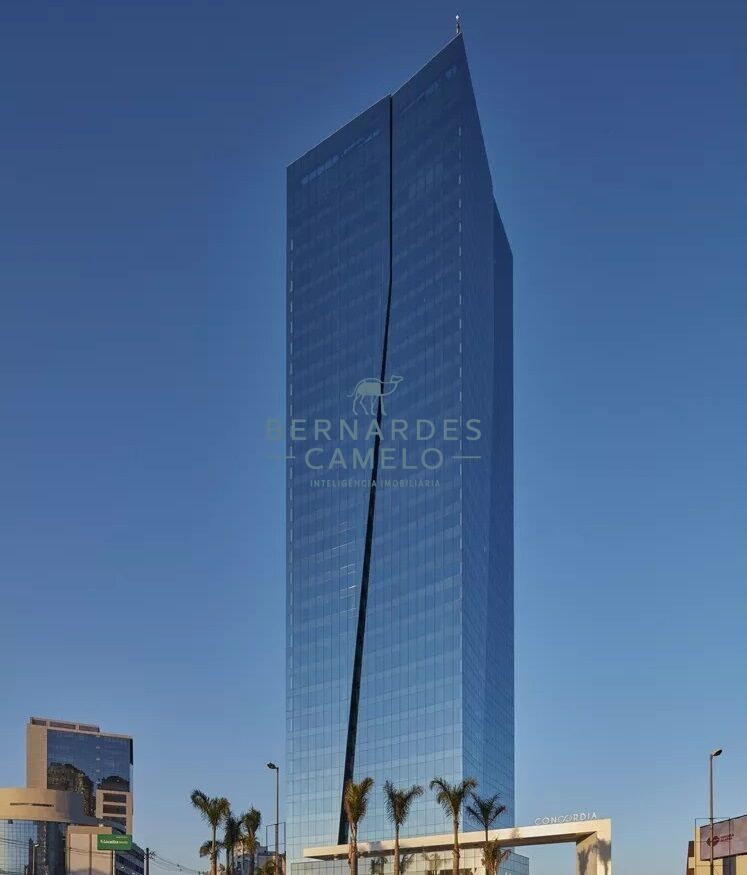 Com fachadas em cortina de vidro, oferece vistas panorâmicas de 360 graus, além de eficiência energética com vidros de controle térmico.
